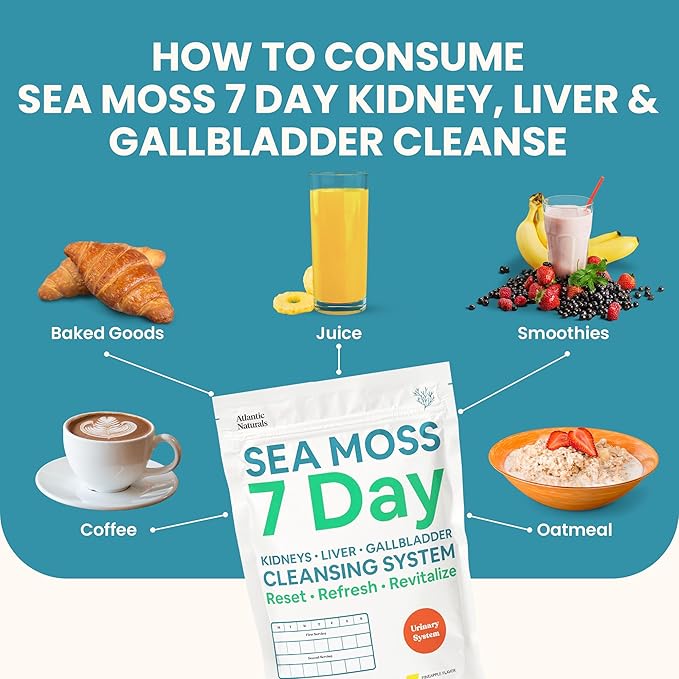 - DELIGHTFUL PINEAPPLE FLAVOR: Enjoy the tropical zest of pineapple in every sip of our Sea Moss stomach liver and gallbladder cleanse. Formulated for both effectiveness and taste, this flavored powder offers a refreshing way to complement your wellness goals. Simply mix with water for a delightful kidney detox tea addition to your day, encouraging consistent use throughout your 7 day detox cleanse.
