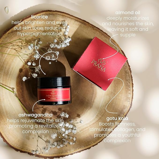 PRANA Ashwagandha Day Face Moisturizer - Natural Face Lotion with Ayurvedic Ingredients like Licorice, Almond Oil, Gotu Kola - Skin Repair & Hydration, Vegan, Fragrance & Cruelty-Free Lotion (50ml)