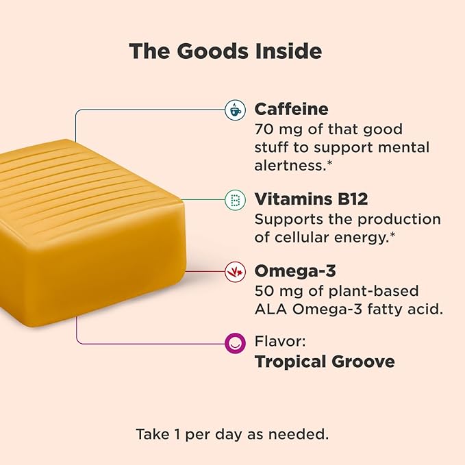 - HOW TO TAKE: Take 1 chew per day as needed—on the go, take it with you in your backpack or purse any time you need to a pick-me-up.