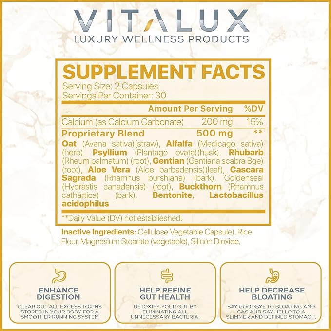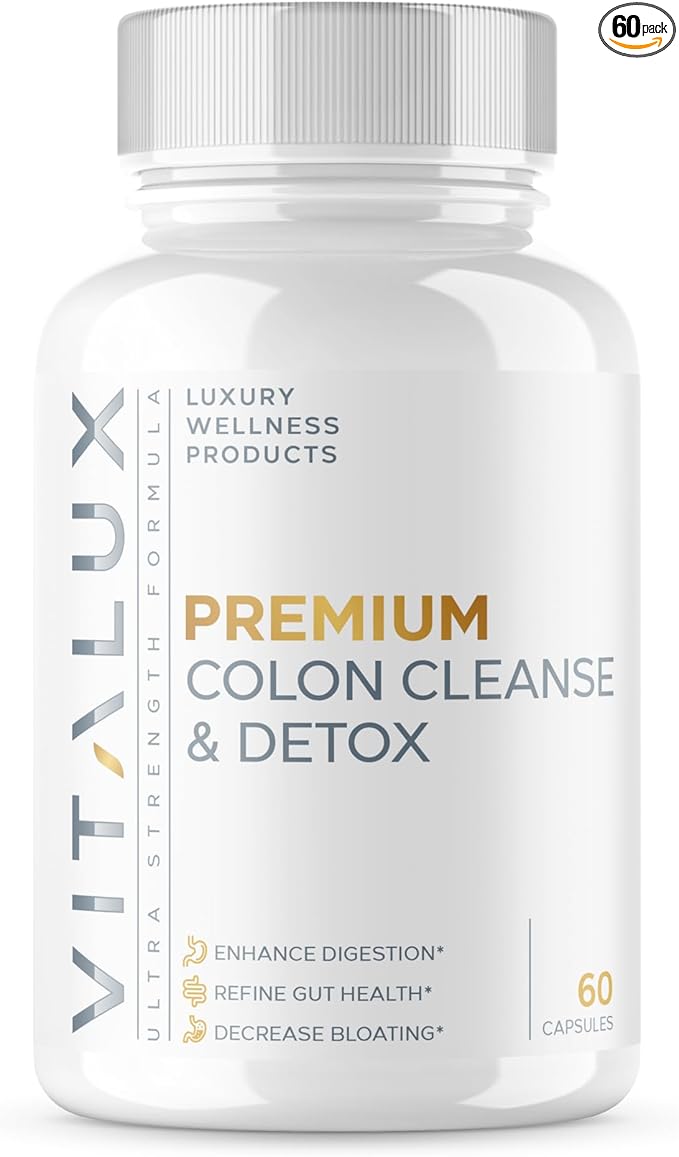 VITALUX || #1 Rated Premium Colon Cleanse & Detox || Enhance Digestion, Gut Health, Decrease Bloating | Ultra Dosed Formula w/ 10 Powerful Ingredients | 3rd Party Tested + USA Made - 60 Capsules