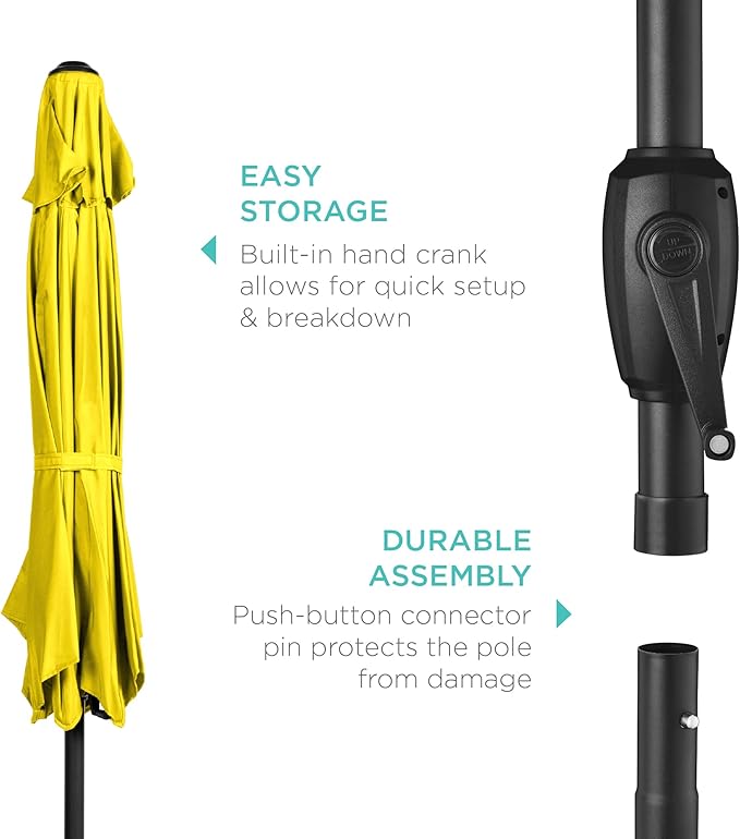 Best Choice Products 7.5ft Heavy-Duty Round Outdoor Market Table Patio Umbrella w/Steel Pole, Push Button Tilt, Easy Crank Lift - Yellow