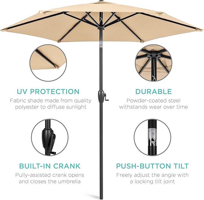Best Choice Products 7.5ft Heavy-Duty Round Outdoor Market Table Patio Umbrella w/Steel Pole, Push Button Tilt, Easy Crank Lift - Sand