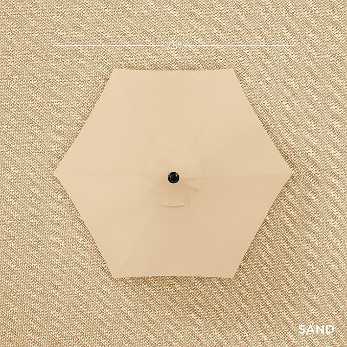 - HEAVY-DUTY FRAME: Solid 6-rib steel frame supports the 7.5-foot canopy and helps resist warping and other damage in the wind