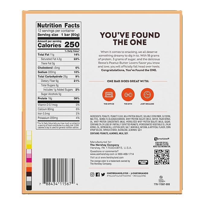 - THE ONE PROTEIN BAR: Discover all the mouthwatering, high-protein bars from ONE! Whether you're craving our classic core flavors, limited-edition options, or even a Hershey's ONE Reese's Peanut Butter Lovers Bar, weve got something for every taste. Packed with protein and flavor, these bars are perfect for fueling everyday. Try them all and find your next pantry staple today!
