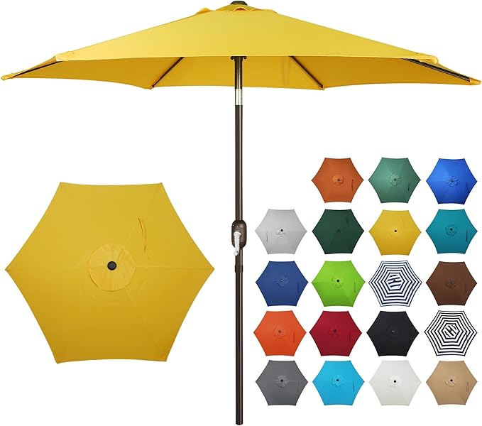 Blissun 7.5 ft Patio Umbrella, Yard Umbrella, Outdoor Market Umbrella with Push Button Tilt Crank, Yellow