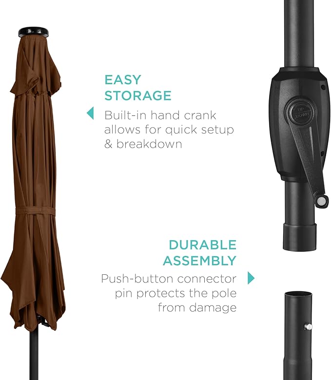 Best Choice Products 7.5ft Outdoor Solar Market Table Patio Umbrella for Deck, Pool w/Tilt, Crank, LED Lights - Brown