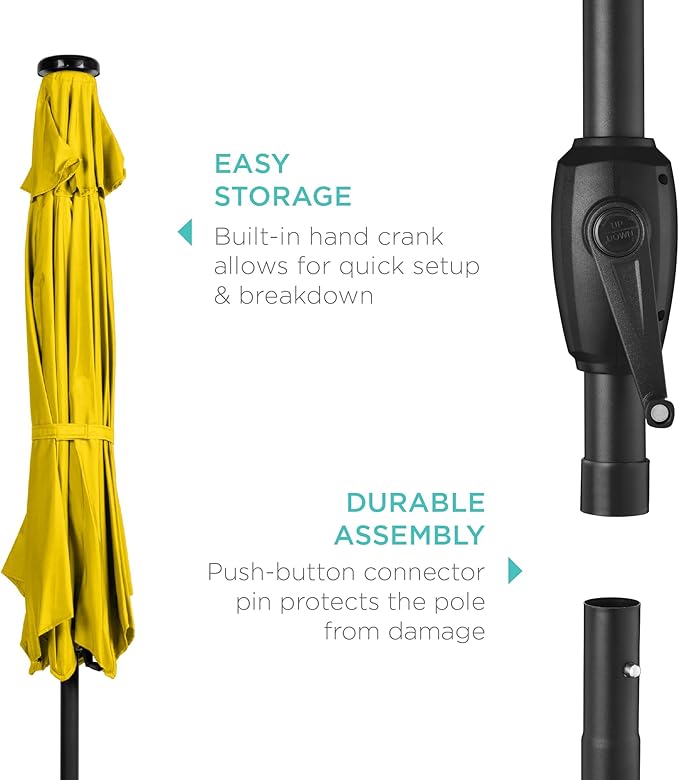 Best Choice Products 7.5ft Outdoor Solar Market Table Patio Umbrella for Deck, Pool w/Tilt, Crank, LED Lights - Yellow
