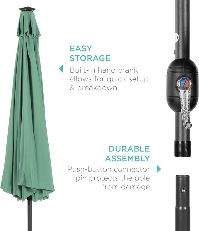 Best Choice Products 10ft Solar Polyester LED Lighted Patio Umbrella w/Tilt Adjustment and UV-Resistant Fabric - Seaglass
