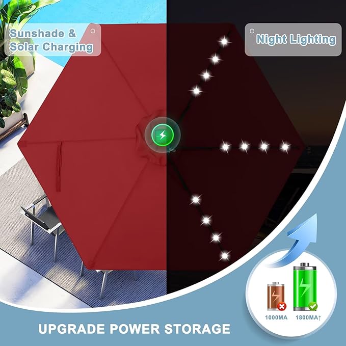 ABCCANOPY Durable Solar Led Patio Umbrellas with 24LED Lights 7.5FT with 6 Sturdy Ribs (Burgundy)