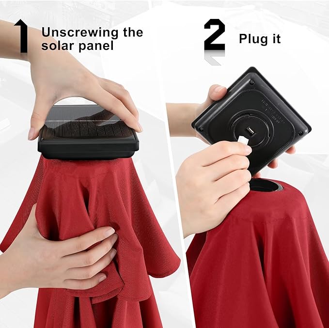 - ★ Hassle-free setup and storage with a detachable pole and crank handle; NOTICE: Please check the plug connection by unscrewing the solar panel before use, and the solar panel should be exposed to sun for 6-9 hours . If the light still not work, please contact us, we will solve this problem for you. Umbrella base not included