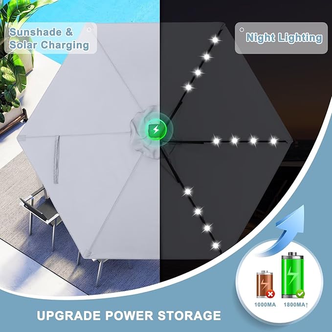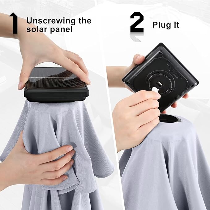 - ★ Hassle-free setup and storage with a detachable pole and crank handle; NOTICE: Please check the plug connection by unscrewing the solar panel before use, and the solar panel should be exposed to sun for 6-9 hours . If the light still not work, please contact us, we will solve this problem for you. Umbrella base not included