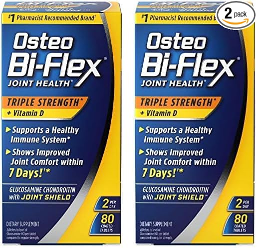 Osteo Bi-Flex Triple Strength(5) with Vitamin D Glucosamine Chondroitin Joint Health Supplement, Coated Tablets, 80 Count (Pack of 2)