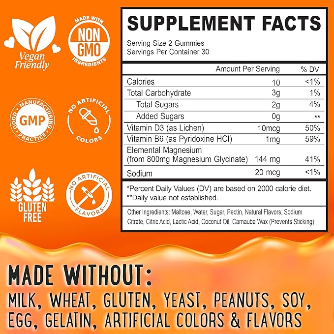 - Gentle and Effective Magnesium Support for All Ages: Each magnesium glycinate gummy delivers 400mg of magnesium glycinate with vitamin B6 & D3, offering enhanced absorption to support muscle health, relaxation, and restful sleep for the whole family.