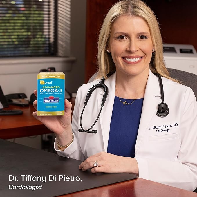 Qunol Advanced Omega 3 Krill and Fish Oil Complex, 10x Better Bioavailability, One Pill Dose, 250mg EPA & DHA, Supports Brain, Eye, Heart and Joint Health, 90 Count (Pack of 1)