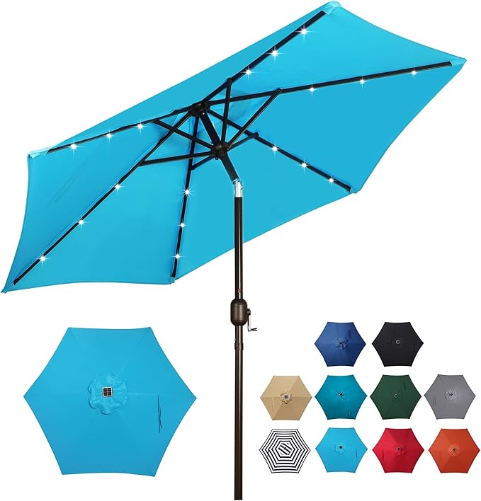 Blissun 7.5 ft Solar Umbrella, 18 LED Lighted Patio Umbrella, Table Market Umbrella