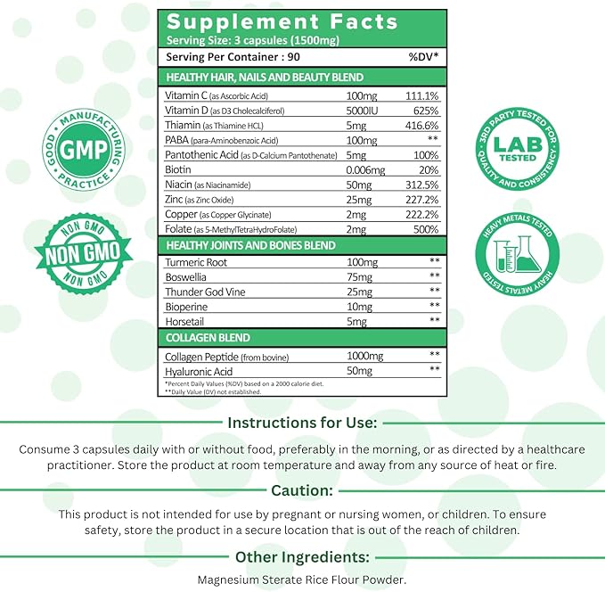 - πββοΈ Strong Hair & Nails: Nourish your hair and nails with essential vitamins like Thiamin, Paba, and Hyaluronic acid for improved strength and growth.