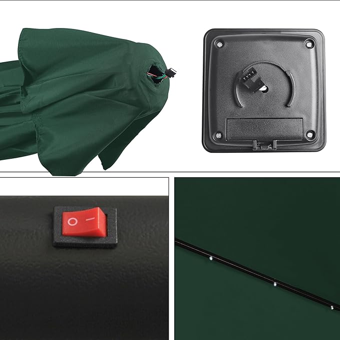 - Entertain Day and Nights -- Solar powered LED lights brighten up an evening gathering, while the umbrella keeps you shaded as you enjoy daytime drinks with your friends. NOTE: Umbrella base not included in the package.