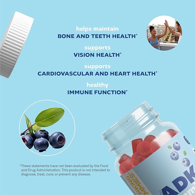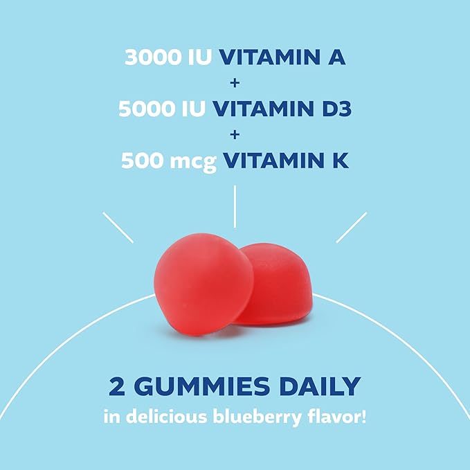Vitamins ADK Gummies - Vitamin A D3 K2 Supplement - A 3000 iu, D3 5000 iu, K2 500mcg for Immune, Joint, Bone, Heart, Vision Health - Kids, Adults, Women - 60 Count Blueberry Flavor