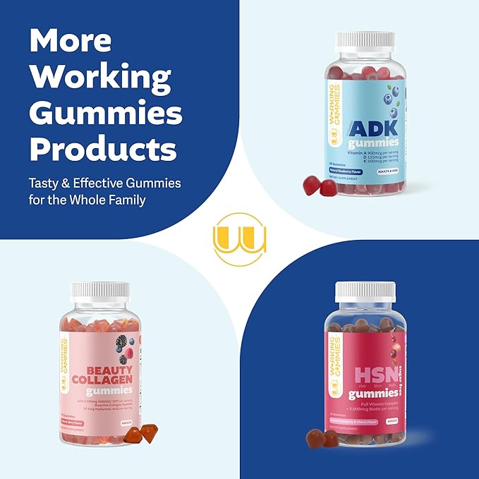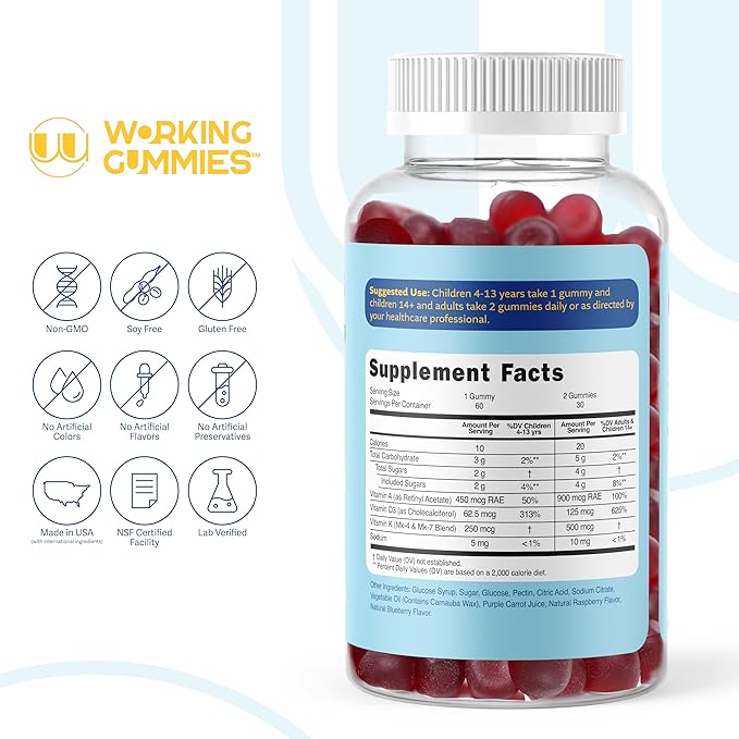 - EFFECTIVE ADK FORMULA : Working Gummies ADK Multivitamin contains 3000 iu Vitamin A, 5000 iu Vitamin D3, 500 mcg Vitamin K. Synergistic dosage to maximize the benefits without over in-take.