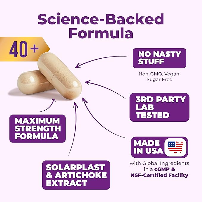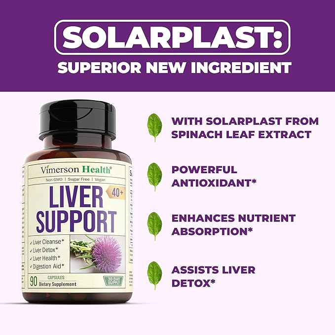 - NATURAL & HERBAL LIVER SUPPORT – Carefully crafted herbal liver detox supplement with Milk Thistle to support your liver's natural detoxification process. Helps eliminate toxins and maintain energy, metabolism, and overall wellness—allowing you to maintain a healthy, active lifestyle, whether at home or while traveling. Now enhanced with Solarplast for additional antioxidant benefits tailored to aging adults.*