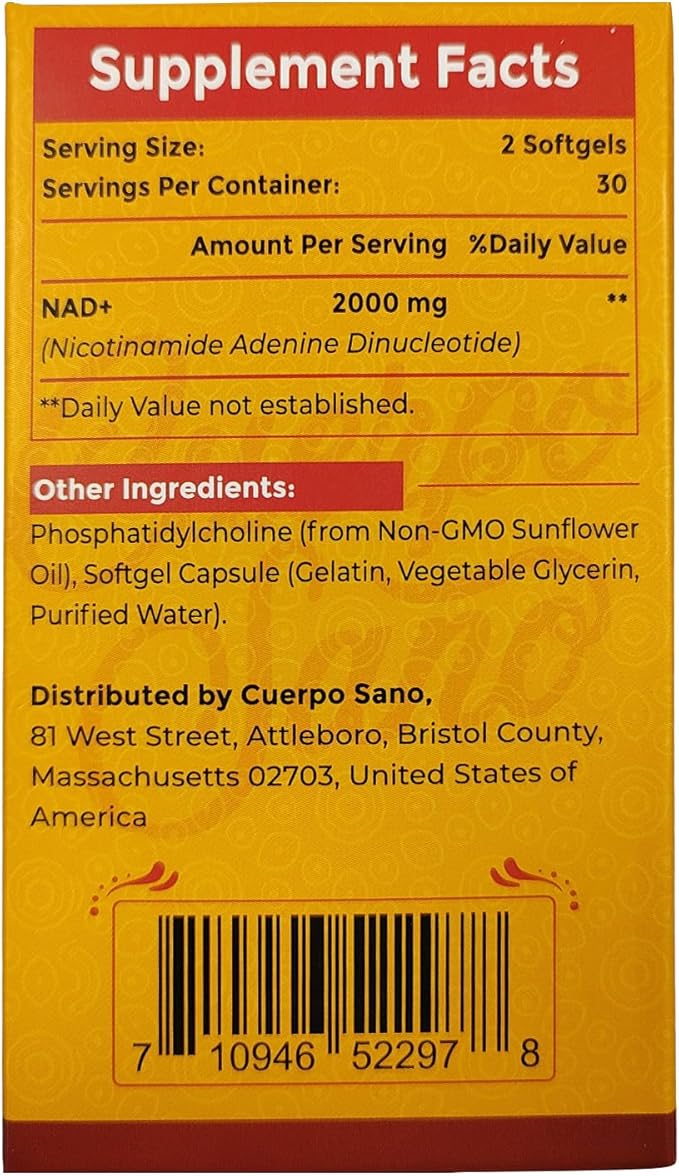 - High Potency 2000 mg NAD+ Supplement: Experience the power of a premium 2000mg dose of NAD+ per serving, designed to fuel your cellular energy and overall vitality. As NAD+ levels decline with age, our supplement helps restore and enhance your body's natural processes, providing essential support for your cellular energy and well-being.