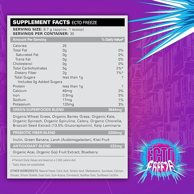 EHP Labs x Ghostbusters OxyGreens Super Greens Powder - Spirulina & Chlorella Superfood, Green Juice Powder with Prebiotic Fibre, Antioxidants & Immunity Support, 30 Serves (Ecto Freeze)