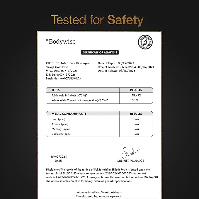 - LAB TESTED & PREMIUM QUALITY: Be Bodywise Pure Himalayan Shilajit Resin Gold Gummy is “Lab Tested” to be free from heavy metals, fillers, and harmful additives. Crafted in its most authentic form, it has no added sugar, corn starch, glucose syrup, artificial colours, or gum. It's completely vegan, natural, and non-GMO.