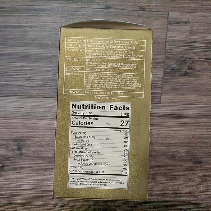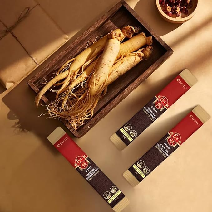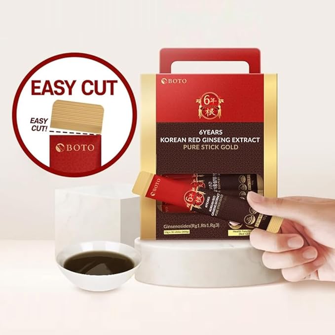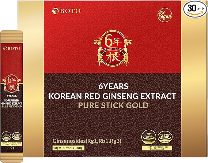 BOTO 6 Years Korean Red Ginseng Gold Extract Natural Energy Supplements Nitric Oxide Brain Natural Immune Support Liquid Portable Sticks 30 Sachet for 1 Month