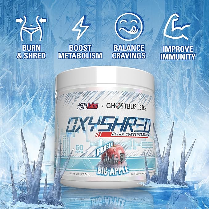 EHP Labs x Ghostbusters OxyShred Pre Workout Powder Supplement - Preworkout Powder with Acetyl L Carnitine, Energy Boost Drink - Frosty Big Apple, 60 Servings