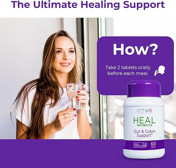 - Intus Heal provides digestive support with a carefully selected Ayurvedic blend. Perfect for men and women, it promotes gut health and wellness when taken regularly before meals.