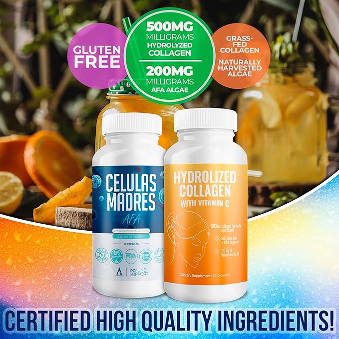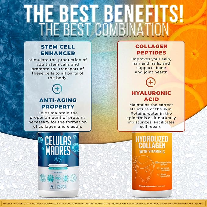 Aura Vitamin Mega Antioxidant Bundle | Hydrolyzed Collagen & AFA Stem Cell | Hydrolyzed Collagen with Vitamin C, Aphanizomenon Flos-Aquae | Celula Madre Skin, Hair and Nail Support – 60 Each Caps (3)