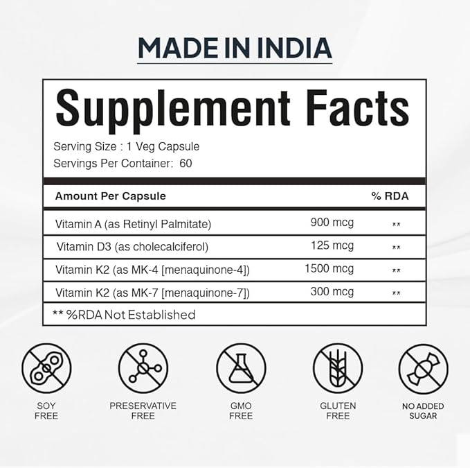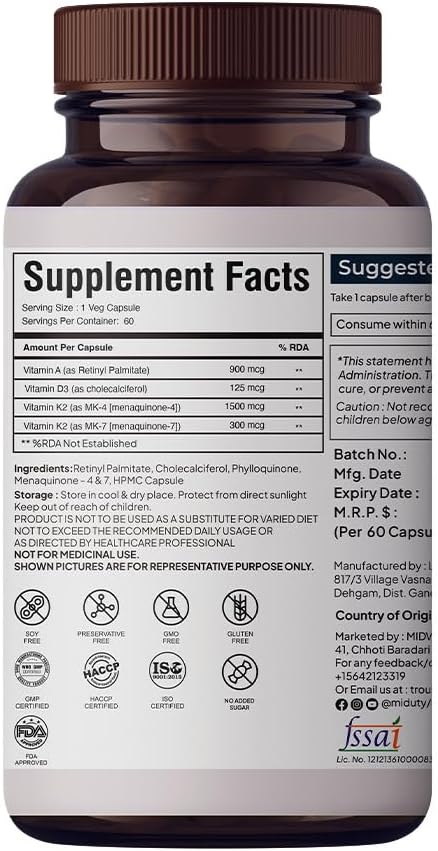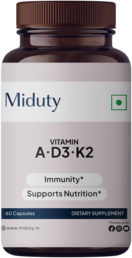- Unique Formulation Miduty'S Vitamin Adk Has A Unique Formula Which Includes Vitamin A And Vitamin K2 With Vitamin D3 Supplement.