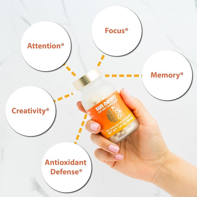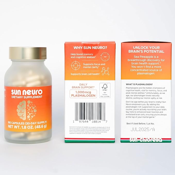 Sun Chlorella Sun Neuro Nootropic Brain Supplement - Daily Memory Concentration & Focus Supplement for Women & Men - Natural Plasmalogen Boost from Sea Pineapples - 180 Capsules