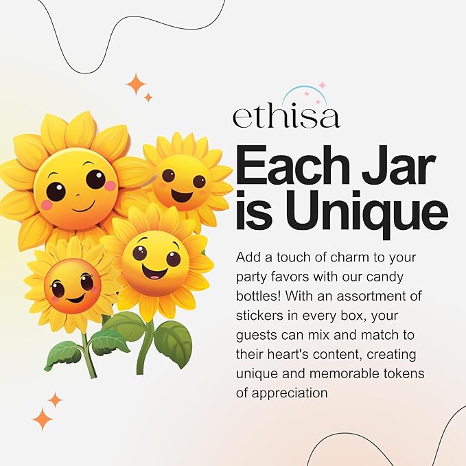 - UNIQUE JARS - Each package comes with 12 unique sunflower stickers to add a personalized touch to each bottle. Send everyone home feeling appreciative of the extra creativity in your thoughtful keepsakes