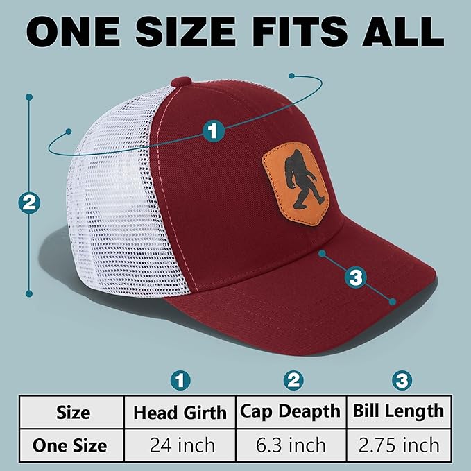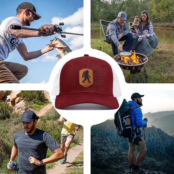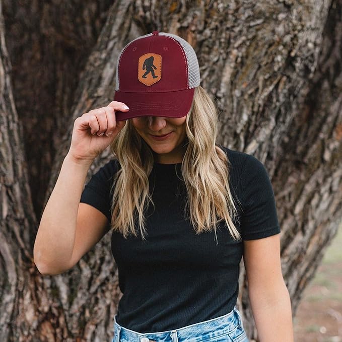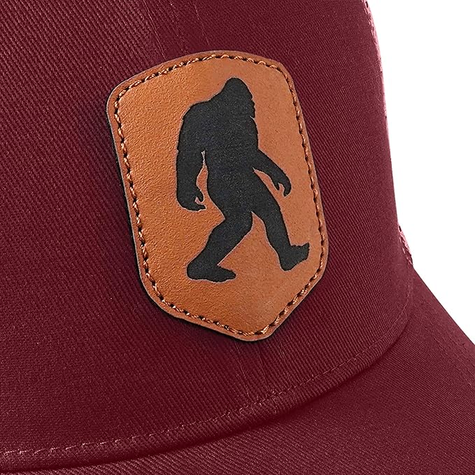 - Wild Bigfoot Designs: Features an exquisite Bigfoot leather logo on the front of these leather patch hats. These Bigfoot leather patch hats will soon become your favorites. Because you will get comments and compliments on it wherever you wear these Bigfoot hats for men.