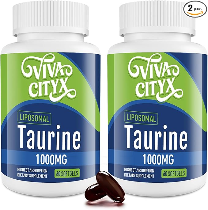 Taurine 1000mg - Liposomal Taurine Amino Acid Supplement for Heart, Liver, and Brain, Longevity - High Absorption, Vegan & Gluten Free (60 Softgels - 2 Pack)