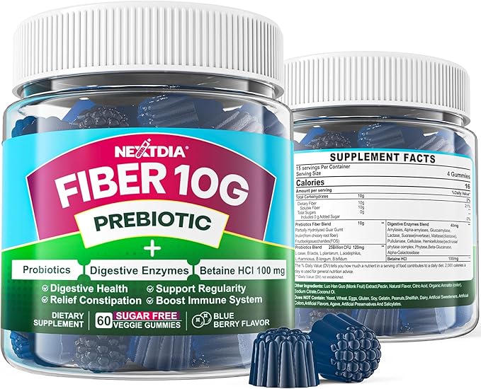 - 【Chewy & Convenient Fiber Intake】Make taking your daily fiber feel like a snacks! Daily fiber gummies deliver natural blueberry taste with no aftertaste, sugar free, delicious, easy to chew and a perfect alternative to hard-to-swallow fiber pills and capsules. Plus, they are Non-GMO, natural, gelatin-free, gluten-free, and vegan. Only 5% of Americans get enough fiber, Nextdia organic fiber supplement is the easy gentle solution for ever yday. Easy to carry with you wherever you go.
