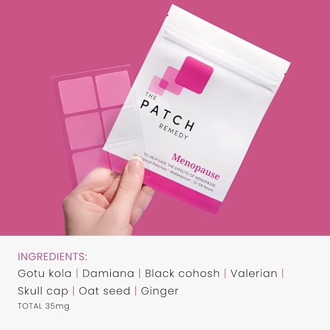 - NATURAL MENOPAUSE RELIEF - The Patch Remedy's Menopause Patches are designed to help alleviate the uncomfortable symptoms of menopause & perimenopause. Use them day or night when sleeping, they are Infused with potent botanicals like black cohosh, valerian, and skull cap, these patches can help reduce hot flushes, mood swings, and sleeplessness.