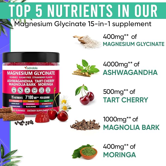 - VEGAN, GLUTEN-FREE GUMMIES FOR THE ENTIRE FAMILY, INCLUDING KIDS: Adndale Magnesium Glycinate Plus+ gummies cater to the entire family, including children, with a vegan-friendly and gluten-free composition. This aligns with dietary preferences and health-conscious lifestyles, providing a convenient means to support relaxation and overall wellness.