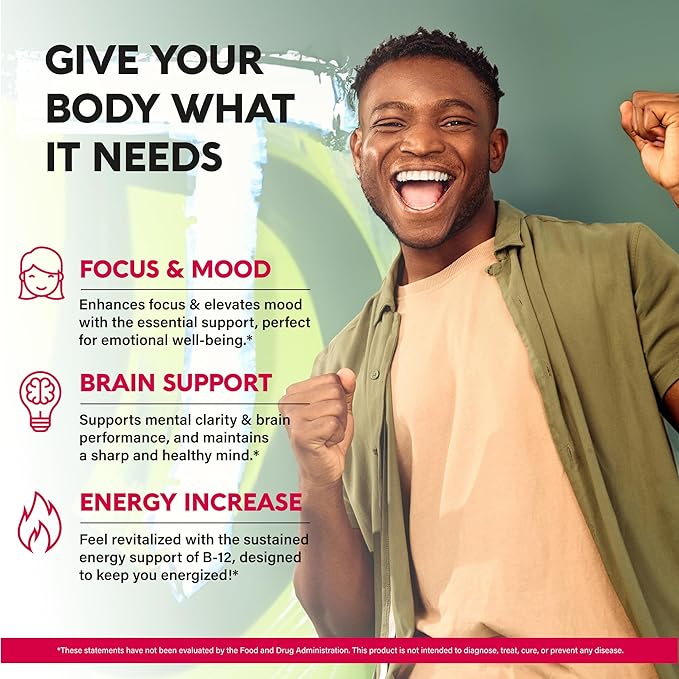 - Focus, Mood & Energy - B12 for men & women are crafted to enhance mood and energy, helping you stay sharp and focused. Boost your overall health and well-being with our B12 vitamins.