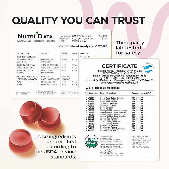 - Pure and Natural: Experience the benefits of Beet Root with our cherry-flavored, Vegan and Non-GMO gummies; Free from Gluten, Sugar and Gelatin, ensuring a clean and natural well-being supplement.