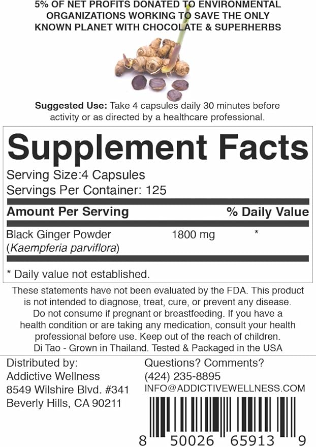 - NATURAL BLACK GINGER SUPPLEMENT: Also known as Thai Ginseng, Krachai Dum, Thai Black Ginger or Kaempferia Parviflora, it has been used in the herbal system of Thailand and as a ginger supplement for inflammation for over 1,000 years
