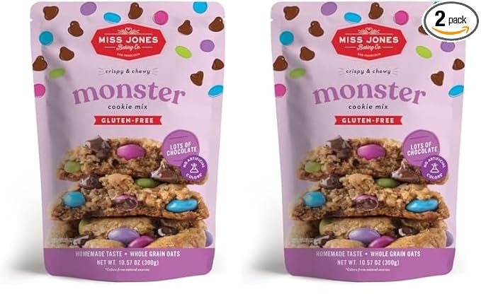 Miss Jones Baking Monster Cookie Mix - Certified Gluten Free & Made with 100% Oats, Easy To Bake Desserts & Treats, Artificial Colors, (Pack of 2)
