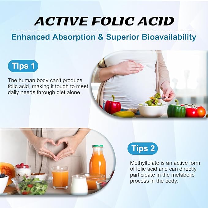- Enhanced Absorption for Optimal Nutrient Utilization: Active folic acid, specifically L-methylfolate, is the biologically active form of folate that the body can readily absorb and utilize. This form undergoes specialized processing to ensure efficient conversion into the active form needed by the body. With enhanced bioavailability, active folic acid provides superior absorption and effectiveness, supporting optimal health