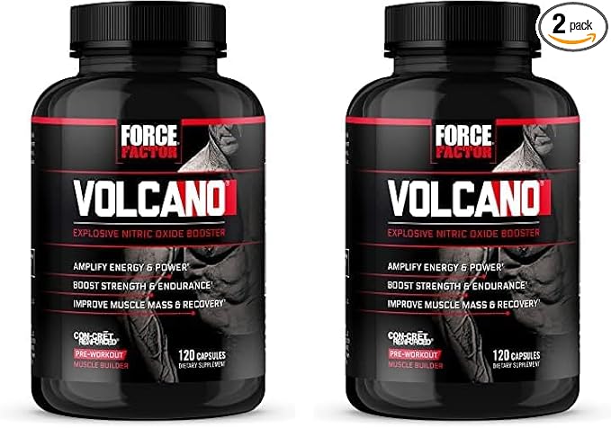 Force Factor Volcano Pre Workout Nitric Oxide Booster Supplement for Men with Creatine and L-Citrulline to Boost and Energy, Help Build Muscle, Better Pump and Workout, 120 Capsules (Pack of 2)
