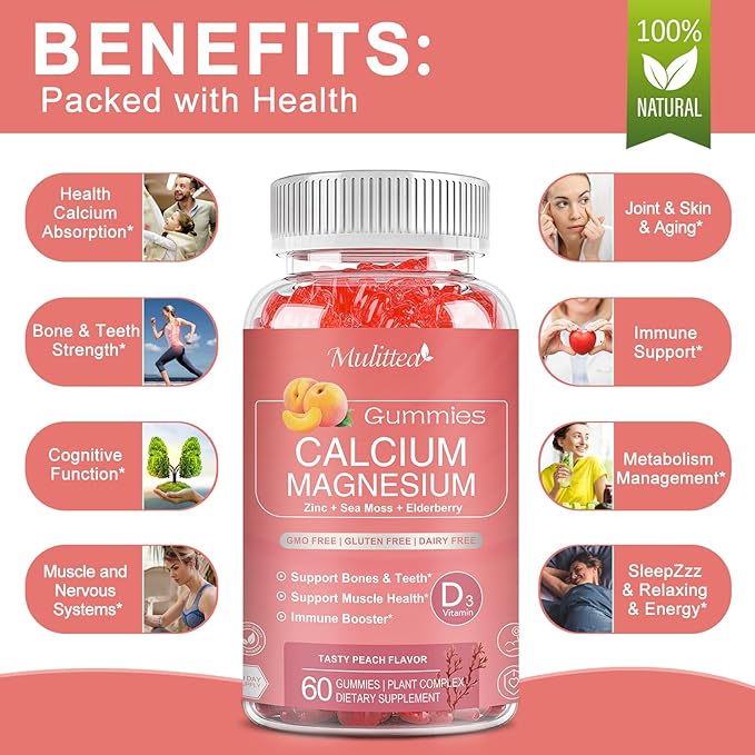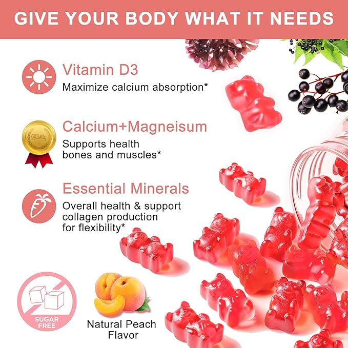 - Sugar-Free & Absorbed: Swallowing large capsules, tablets, or pills is a chore, These delicious active calcium gummies with potassium magnesium D3 & natural vitamin will make it easy. Our Peach Flavor (Sugar-Free) gummies are expertly formulated, No aftertaste, and more easily absorbed
