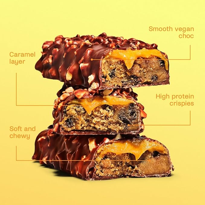 - HEALTHIER CHOCOLATE SNACK: A chewy & fudgy center topped with a layer of indulgent caramel & coated with smooth vegan chocolate & roasted peanut pieces, for a satisfying bite; ideal on-the-go or office snacks