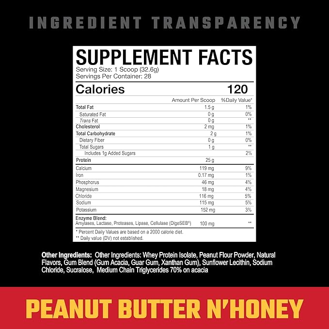 Axe & Sledge Supplements Farm Fed 100% Whey Protein Isolate with Digestive Enzymes (Peanut Butter N' Honey)