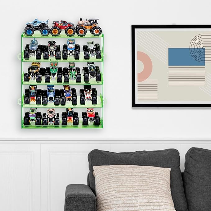- Premium Acrylic Construction: Constructed of premium acrylic material, this monster storage unit offers not only durability, but also crystal clear transparency. Your monster trucks will shine brightly, free from any visual obstructions, making it a true spectacle.