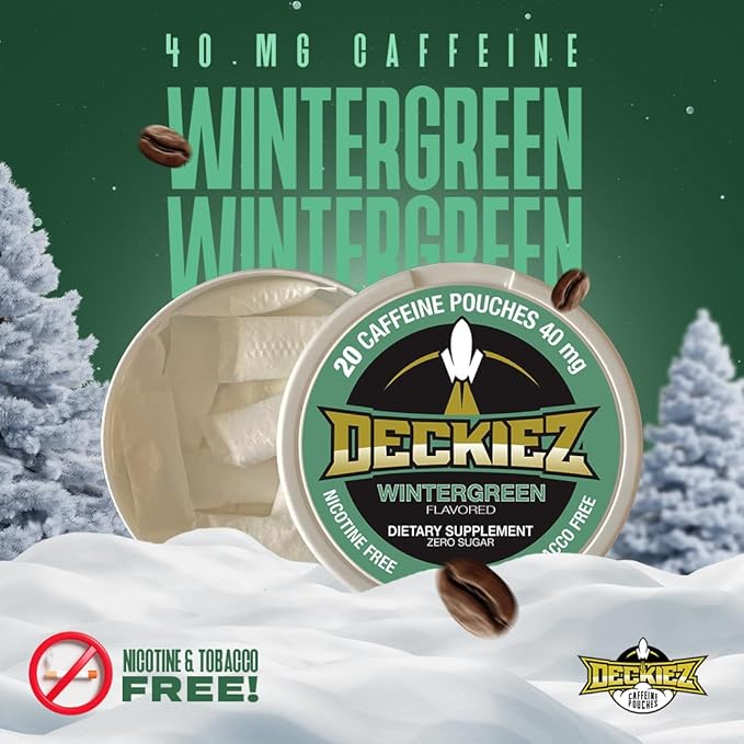 - FOUR DELICIOUS FLAVORS: Deckiez Caffeine Pouches are available in four irresistible flavors: Wintergreen, Berry Blitz, Raspberry Fuego, and Zen Lime. Unlike coffee-based products, Deckiez tantalizes your taste buds while providing a caffeine boost. Say goodbye to bland alternatives and hello to flavorful refreshment with Deckiez.